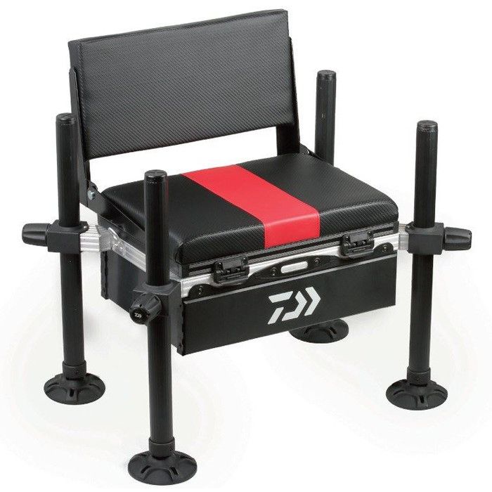 Small and Light weight, the Daiwa D-VEC is a black and red fishing seat box with an additional back rest. The 4 36mm (with screw caps) can easily ensure your seating position is level for even the most uneven pegs.