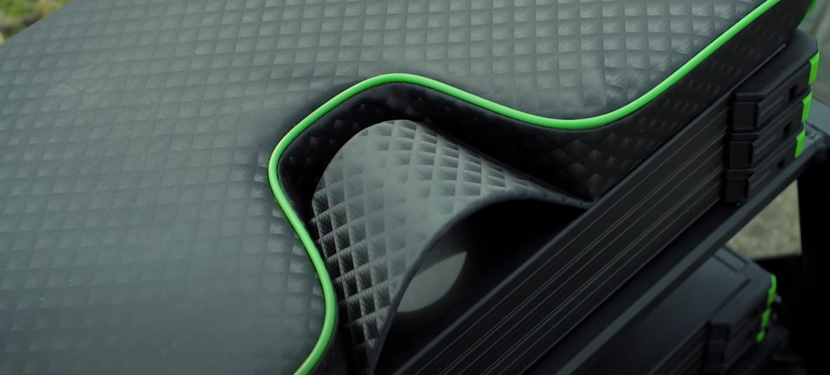 One thing that really struck me about this box is how amazingly comfy the box looks - and that's even before actually sitting on it. The seat cushion looks incredibly padded and is styled in a "carbon fibre" design with stunning embroidered detailing.